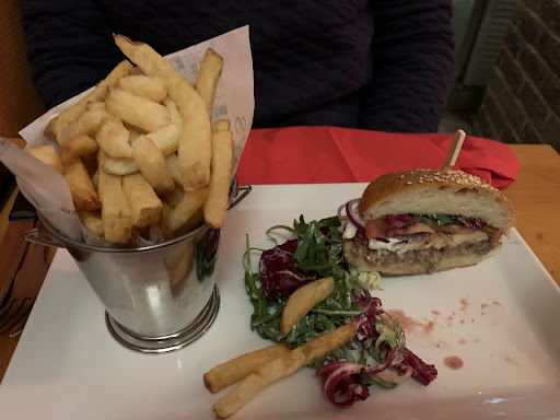 My husband and I stumbled upon this place for dinner and we’re so glad we did! The owner was very nice and was patient with us when we tried our best speaking the little French we know. The whole menu looked amazing and had a very unique combination of ingredients, it was hard to choose one burger! We shared the Provençal burger—it was so juicy and the goat cheese and sauces created a delicious flavor. For dessert, we got the tiramisu which was also wonderful! The restaurant was fairly small inside so if you are a group of 3 or more, you might want to go earlier. I’m sure this is different when it’s not the winter and they have...