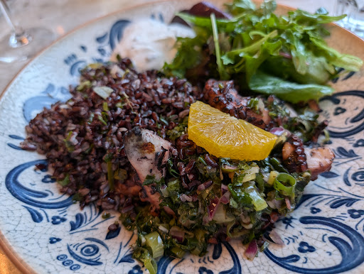 Our selections included the pasta of the day, the Caribou burger, and the octopus. Each dish was well-prepared and flavorful, but the octopus truly stood out with its tender texture and delightful seasoning.