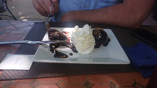 En plus d'ĂȘtre en plein cĆur d'un village qui nous offre une vue splendide et oĂč l'on se sent bien, le personnel est sympathique et ils ont un chat qui passe de temps en temps passer le bonjour aux clients, habituĂ© Ă leur contact, se permettant de grimper directement sur certaines tables (vides Ă ce moment lĂ , certes), prenant toute la vedette quand on a suffisamment contempler le paysage. Franchement, je suis trĂšs conquis par le concept de ce restaurant que j'aurais pu davantage apprĂ©ciĂ© dans d'autres contextes. C'est d'ailleurs le seul restaurant oĂč je n'ai malheureusement pas pu prendre de dessert pour une fois qu'il y avait un de mes grands classiques prĂ©fĂ©rĂ©s Ă la carte, Ă savoir le baba au rhum, que j'avais bien sĂ»r choisi en tĂȘte Ă peine arrivĂ© sur le lieu. Ăa aurait Ă©tĂ© tellement intĂ©ressant de goĂ»ter un baba au rhum Ă Marseille. L'heure n'est pas au regret, si je repasse dans la ville prochainement, autant je testerai de nouveaux restaurants, autant que je reviendrai dans celui-lĂ oĂč j'ai connu un trop grand nombre de frustrations, y compris mon plat... đ