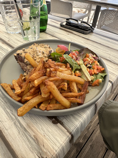 Le grand large, prenez le large ! Cuisine incipide, surgelĂ©e pour la majoritĂ© des plats. Les moules au roquefort n'en n'avaient que le nom, pas de goĂ»t de roquefort, les frites sont arrivĂ©es aprĂšs les avoir rĂ©clamĂ©es 2 fois, mais nous avions fini nos moules... Les calamars (surgelĂ©s et Ă peine cuits) sans sauce romaine, que la serveuse n'a pas su nous dĂ©crire, quelques frites et de la salade. Un des plats Ă Ă©tĂ© servi 15 minutes aprĂšs tous les autres car pas pris en compte en cuisine... L'espadon sec alors que la serveuse avait demandĂ© la cuisson souhaitĂ©e, aucun assaisonnement, frites et salade sans saveur. La dorade idem moyen. Aucune prĂ©sentation, l'assiette ne donne pas envie. Les frites (surgelĂ©es aussi) n'Ă©taient pas cuites et blanches. Pas de rince doigts pour les moules. Quant au pain, 3 morceaux pour une table de 6 personnes..(?) Et quand vous en demandez, le serveur prend le pain venant d'une autre table pour le remettre dans votre corbeille oĂč est l'hygiĂšne ? Bref, Ă la limite du piĂšge Ă touristes Ă©tant donnĂ© les prix. Du coup, pas de desserts, qui sont certainement surgelĂ©s aussi (fondant chocolat ou tarte normande ou glaces), ni cafĂ© de peur d'alourdir encore l'addition. Passez votre chemin, vous ferez des Ă©conomies, aucun intĂ©rĂȘt Seuls points positifs, le point de vue sur la mer et de l'eau fraĂźche dĂšs notre arrivĂ©e, c'est bien agrĂ©able par cette chaleur. Par...