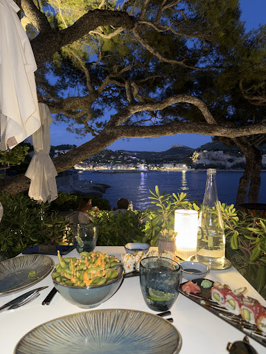 We were offered a reservation at this restaurant on a night when they had a fixed menu of sushi. We really wanted to eat in this fabulous location so we took the reservation. The food was good but it was a very expensive menu with no choices and mostly sushi and sashimi. The service was a little scattered and there were some mix ups despite the restaurant not being full because of the unusual fixed menu. We were underwhelmed by the food and service but the atmosphere of this outdoor bar-restaurant, is just lovely. It was a beautiful night and the bar looks out on the lovely port of Cassis. We feel happy we were able to eat there but they should work on the quality of their servers and it is never a good thing to offer a fixed menu so expensive...
