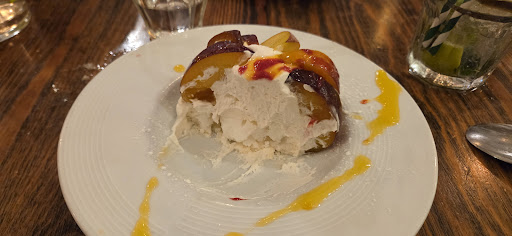 Pour le dessert, un crumble aux pommes bon mais par contre une pavlova à la pêche décevante. Des fruits durs avec peu de goût, je ne comprends pas qu'on ne se rende pas compte de ça. Je trouve originale le tiramisu spéculoos kinder Bueno mais quel dommage de faire un mix avec de l'industriel dans un restaurant comme celui ci.