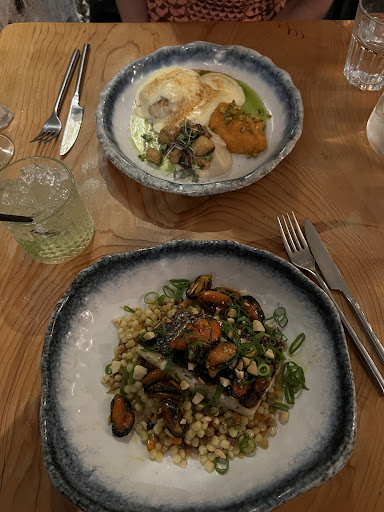 The food is creative, impeccable, and fresh in a town where a lot of places are tourist traps or stale repeats of the same things (try their cod with sesame miso butter, their calamari with yuzu mayonnaise). The service is incredibly friendly, accommodating, and charming (they sat our group of 7 with such friendliness, moving around tables for us). The interior design is very unique and attractive (you have to check out the giant red fish that is the only light in the bathroom). We loved everything. The meal was punctuated with exclamations of praise and excitement. My grandma adored the rum baba.
