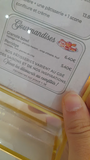 Est-ce une blague ? Venue sur demande d'une ami qui avait hĂąte de goĂ»ter vos gĂąteaux qui, entendons nous, avaient l'air super. Les prix sont IMPENSABLES. On nage en plein dĂ©lire. 2 euros et 50 centimes pour un espresso c'est du vol en pleine journĂ©e. 4 euros pour un cookie, qui est pourtant bien plus petit que la part de gĂąteau. 5,70⏠pour un milkshake, de taille parfaitement moyenne voire moins grand qu'ordinaire. Vous avez perdu la tĂȘte ? Je pourrais Ă©noncer chaque prix de cette carte et m'effarer de tout. 4 euros le verre de jus d'orange, 14 euros un trĂšs PETIT DĂJEUNER, 3âŹ80 LA TASSE DE THĂ, votre afternoon tea qui ne CONSTITUE PAS un repas, coĂ»te le prix d'un plat et d'une entrĂ©e dans un bon restaurant. Le supplĂ©ment de 80 centimes pour le lait vĂ©gĂ©tal c'est juste de l'irrespect, quand on sait que les 3/4 des cafĂ©s Ă Marseille ne font pas payer le changement pour des gens qui sont possiblement INTOLĂRANTS rappelons le. Et +1⏠sur les pĂątisseries au prĂ©sentoir, pour une raison qui m'Ă©chappe parfaitement. Je pourrais continuer des heures, mais je pense que vous avez saisi.