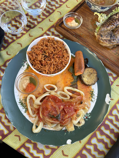 Read moreOkay but could be so much better. Location is very nice and vibe. However as for food I was not that impressed, it was nice but not nice enough for the price they were charging. Very overpriced in my opinion. Flavours are more like simple home cooking. Certainly not £25 a main. The jollof rice wasn’t that good and the squid neither. None of the vegetables were fully cooked. Lots of plain tomatoey flavours. The fish soup was nice but also expensive and small portion. The lamb was nice though but again expensive. Wait was quite long for food and then the restaurant had a mix up with our bill which took ages to sort out. Toilet was also very very dirty with pee all over seat and place. And tableware was broken and mismatched. It wasn’t presented well. If you are going for a authentic shanty vibe maybe that’s okay, but with the price they’re charging I would expect much much more from the...