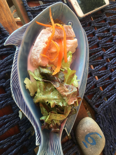 To be fair, maybe it was because they only reopened after the lockdown. The waiters were really nice and the vibe was great. You're seated on the terrace, under the shade, with cute table settings. I ordered sauteed frog legs, grilled fish with plantains and grilled octopus with rice. First disappointment: it took 50 mins for our cocktails to arrive (only came after we asked for it again) and then we waited another 30 mins for our food. I liked our food but the octopus was a bit dry and the spicy african sauce was SPICY. I'm cambodian so I could handle it fine but I dont think the majority of clients there would be able to enjoy it.