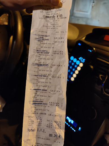 Read moreTrès déçut après avoir jeûner je penser bien manger chez eux mais ZÉRO, premièrement frais de livraison non mentionné sur le flyer mais il facture 1.90 sur le ticket de caisse je précise pour une commande de 89 euros !!! Deuxièmement ils arrivent quand même a oublié un wrap qui n'a pas était facturée tout cour sur le ticket mais j'ai payée en sue lors de la livraison , donc une fois que tout le monde a mangé mon petit frère ce retrouve a manger seul son wraps livrée 30 minutes après avec ses frite froides. ( Grosse commande c'est pour que tout monde mangent ensemble je tient à le dire au cas où) soyer plus vigilant la prochaine fois ! Une erreur sa arrive c'est HUMAIN mais renvoyé le wrap sans aucun geste commerciale !!!! Même pas une canette un dessert wellou ! Je me demande même si ils m'aurai contacter lorsque ils auraient vue que le totale de ce que j'ai payée était 4.90 de plus que ce que je devait !! Sans parler du goût inmangable. PREMIÈRE ET...