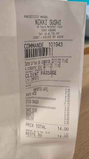 Je viens à l'instant de raccrocher au téléphone auprès d'une responsable au sujet d'une erreur sur une commande. Pour vous expliquer brièvement la situation, nous sommes des clients réguliers de Nikki Sushi Aubagne. Lorsque je dis "nous" j'entends ma famille et moi, nous sommes nombreux donc naturellement, à chaque commande, nous en avons toujours pour un minimum de 120€ voir parfois 200€ (ce qui est une certaine somme). Aujourd'hui, pour la première (et dernière fois d'ailleurs), une erreur est survenue dans la commande, Concrètement, nous avions demandé 4 chirashi mais au final un seul a été envoyé et indiqué sur le ticket. Pourtant lors du récapitulatif de commande par téléphone, 4 ont bien été indiqués. Je me répète, nous sommes une famille nombreuse donc il n'y avait aucun intéret à commander UN SEUL chirashi. D'ailleurs, ce n'était pas la seule erreur Il y'avait de la sauce salée au lieu de la sauce sucrée et aussi de la sauce salée dans les rouleaux de printemps (alors qu'habituellement elle est mise à part dans un récipient prévu à cet effet).Une fois la commande erronée arrivée, je contacte donc le magasin qui s'excuse et indique envoyer à nouveau 3 chirashi. Une fois les chirashi arrivés (1 heure après environ), le livreur me demande de régler. Je lui explique qu'a aucun moment il ne m'a été indiqué que je devais régler cette erreur, surtout puisqu'elle arrive 1 heure après et que nous avions déja tous mangés. J'explique également que si j'avais du régler, je n'aurais jamais demandé à ce que les chirashi soit renvoyés. Le chauffeur livreur me passe donc sa responsable au téléphone, qui m'explique qu'en aucun cas ils étaient offerts et que pourquoi le seraient ils d'ailleurs ?! Je lui explique qu'en fait cela s'appelle un geste commercial, surtout envers des "gros clients" tels que ma famille. Elle m'explique qu'il est impossible de le faire, que nous aurions du lors de la commander tilter au niveau du montant qu'il s'agissait d'une erreur (soit faire une partie de leur boulot) et qu'elle peut éventuellement réaliser une remise sur les chirashi. Je lui indique que c'est un scandale de la part d'un commerce tel que Nikki Sushi d’être dans l'incapacité de réaliser un geste commercial, surtout qu'il s'agit d'une erreur de leurs part et que nous avions déjà manger depuis au moins une heure et qu'ils peuvent donc récupérer les chirashi car je ne paierai pas pour une erreur qui n'est pas la mienne. Voici l'histoire. Nous ne commanderons plus jamais auprès de vos services, des boutiques de sushi, il existe plusieurs sur Aubagne, ce n'est pas un problème. Cependant je suis profondément déçue de la qualité de votre service client, je trouve ça inacceptable qu'on puisse réaliser des actions pareilles. Surtout qu'au final, ces chirashi que nous avons renvoyés terminerons au mieux pour les employés ou au pire à...