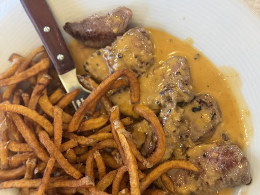 Steak with fries (26 EUR) - sauce so concentrated with flavour, fries crispy yet soaked up the sauce well. Steak...
