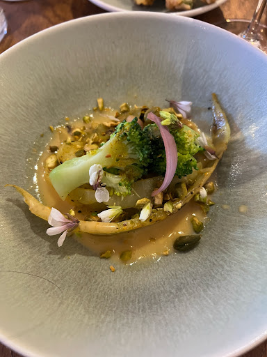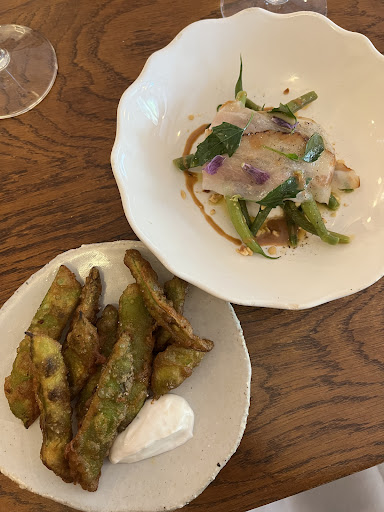 Read moreCame for lunch and did the Menu dégustation en cinq services. Overall is a good price for what you get. This meal started off strong with two tasty entrees. The sauce with the tempura was really delicious. The two main courses however were fairly disappointing. The fish course came with flowers on top that had bugs crawling in them. I just took the flowers off but it was the first thing I saw when I looked down and it really took away my appetite. It tasted just okay which was really a letdown after how good the starters were. The chicken wasn’t very good either, not cooked especially well and the flavor wasn’t special. I didn’t eat much of either main course. It was somewhat redeemed with the dessert which was pretty good, a biscuit with a chocolate mousse, pear sorbet, and tonka cream on top. As for the service, it was okay but nothing exceptional. I found it a little awkward that they never change your cutlery and I wasn’t sure what to do with my used fork and knife between plates and had to leave them in the bread basket to avoid putting them directly on the table. I wasn’t sure whether to give two or three stars since some of the meal was really good, but given that overall I wouldn’t go again I chose...