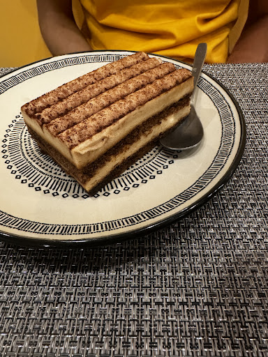 Davvero incomprensibili le recensioni. Ora capisco perchè quando i turisti vengono in Italia rimangono strabiliati dal cibo. Per prima cosa, arriviamo e non c’era nulla del menù che non fosse pizza (niente antipasti, niente primi ecc) quindi siamo stati costretti a prendere la pizza. Arriva la pizza e troviamo in entrambe le pizza la presenza di olive (col nocciolo) che non erano assolutamente scritte nella lista degli ingredienti: roba che se fossimo stati allergici sarebbe stato un problema. Tornando al gusto, pizza che non arriva alla sufficienza. Era praticamente un pezzo di pane con una quantità scarsa di ingredienti per costare 19€ (DICIANNOVE EURO). Fin qui saremmo arrivati ad una quasi sufficienza finchè non ho trovato nella pizza un pezzo molto lungo di plastica di mortadella. Roba che se lo avessi ingoiato non so cosa sarebbe successo. Dopo tutto ció non si sa perchè abbiamo deciso di prendere il dolce. Chiamare tiramisù quella specie di piatto è davvero meritevole del carcere perchè il tiramisù è un dolce con una storia e questo era una specie di budino unito a del pan di spagna (una consistenza da stare quasi male) mentre il gelato era esattamente UNA pallina di gelato al cioccolato super chimico che ad occhi chiusi sarebbe potuta essere tranquillamente fragola o limone poichè il sapore era davvero nulla. Ho messo 2 stelle e non 1 perchè il cameriere è stato gentile e il locale è abbastanza bello. A livello di qualità del cibo: 5 alla pizza (sono generoso perchè per l’errore della plastica e l’aggiunta non comunicata delle olive meritava 3) ma ZERO SPACCATO ai dolci. È meglio non proporli se questi sono i risultati. Se non avessimo usato the fork avremmo pagato 51€ per due pizze e...