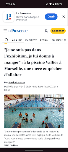 Read moreAprès 20 mois d'allaitement partout et n'importe où, sans jamais avoir eu des remarques négatives, aujourd'hui à la piscine Vallier à Marseille, la responsable de la piscine m'a "invitée" d'aller aux vestiaires pour allaiter mon bébé ! Moi sans bouger je lui réponds est ce que vous mangez dans les vestiaires ? Pas de réponse elle continue à me dire d'aller aux vestiaires ou sinon de mettre une serviette sur la tête de mon fils, je lui réponds vous vous couvrez avec une serviette quand vous mangez ? Et je rajoute que il n'existe aucune loi qui m'empêche d'alleiter mon bébé dans une piscine, elle dit que c'est un endroit public, et je réponds que justement pas de loi pour m'empêcher, elle insiste que c'est le règlement de la piscine de ne pas montrer ses parties intimes !!!! Depuis quand que l'allaitement c'est de l'exhibitionnisme ? Seulement quelqu'un avec une tête tordue pourrait penser ça! Je pense que la seule personne qui était mal à l'aise avec mon allaitement c'était la responsable de la piscine, car personne d'autre n'avait remarqué la situation! C'est vraiment honteux de encore maintenant en 2024 de devoir continuer à se battre pour...