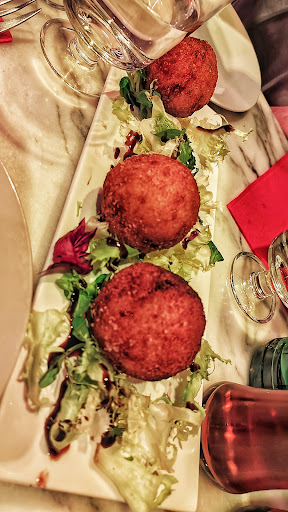 il nous ai apparut un espece de cylindre maron avec une PETITe lichette de " creme" de chaque coté du cylindre . pas farci insipide de la creme fouettée sucrée avachi d avoir trop attendu avant d etre servi . SURTOUT LE BRUIT du CANOLLO....... D UNE VIEILLE BISCOTTE QUI CRAQUE DANS LA BOUCHE . une HORREUR FUYEZ QU ELLE HONTE L LE DECOR EST TRES BEAU ...