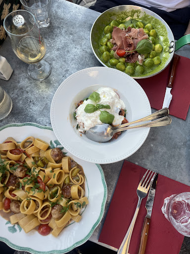 Read moreEn toute honnêteté, j'ignorais qu'il y avait pluieurs services (...) donc nous sommes arrivées pour 8 h moins le quart Alors, le plat TOP de ce lieu, c'est les pâtes aux boulettes, j'en entendais parler dans la voiture 'on va se régaler, tu vas voir";; Etait-ce le trésor caché de Gemenos ?? mais quelle déception, il n'en restait plus qu'UN SEUL !! Donc, honneur à la plus petite (ma petite fille).. Effectivement, pour avoir piqué un bout de viande, ce plat est un vrai régal : Mais pourquoi, vu son succès, ne pas prévoir en cuisine ?? Sinon le serveur était sympa mais le point négatif de ce restaurant, c'est que nous avons été gênées par la musique, trop forte, même si Edith Piaf et Aznavour nous ont fait un chouette concert !. Je l'ai signalé au serveur, le son effectivement a été baissé durant un court moment, puis une personne a de nouveau mis le volume fort (à sa convenance) . Soit... l'adage du "client est toujours roi" n'est plus d'actualité. Par la suite, je sentais une certaine agitation .. Mais oui, il y avait des clients qui attendaient sagement leur tour en bas, alors vraiment, déception, c'est le style 'au suivant" !! Je voyais des clients partir, et aussitôt après, viiiiite, il faut préparer la table... Devinez ? On ne s'est pas attardées après le dessert, avec un sentiment mitigé...
