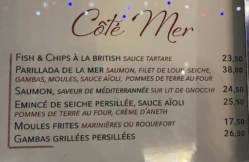 Read moreUn po' deludente. Abbiamo preso il menu da 29,50: frittura di mare (buona ma sembrava preparata prima, aioli meraviglioso, dressing dell'insalata buonissimo e la porzione molto abbondante), moules frites (grande delusione... le cozze erano stracotte, proprio secche e super salate, quasi immangiabili), patatine 🍟 purtroppo mosce), il dolce - creme breule buonissimo, non troppo dolce. La cosa deludente è che non siamo stati avvertiti (nonostante la prenotazione telefonica) che il pagamento è solo in contanti. Quando ho detto al cameriere che poteva dircelo al telefono si è offeso e se ne andato vis senza neanche salutarci. Mi dispiace, ma...