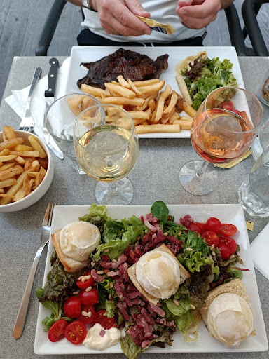 Read more3 of 4, voordeel van de twijfel. Het was heel druk toen wij voor lunch aankwamen, bediening was gestresst of negeerde ons. Toevallig personeelstekort vandaag of standaard bij lunch? Mijn salade was niet goed, te veel spekjes die aan elkaar hingen, te veel dressing. De wijn was warm, kreeg je een emmertje ijsblokjes bij. De frietjes daarentegen waren heerlijk, de entrecote met roquefort saus van mijn tafelgenoot was blijkbaar ook heel goed. Toetje ook heerlijk. Na de lunch kwam de uitbater weer tot rust en maakte grapjes met de degenen die wat kwam drinken. We zaten heerlijk onder de parasol, dus klagen...