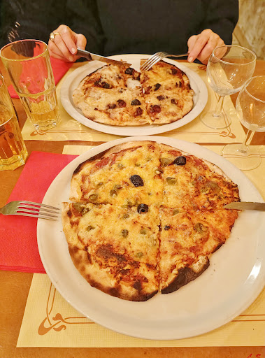 Quand nous sommes rentrés d une façon inopinée, nous avions demandé à la serveuse blonde si il y avait une table et la avec un couteau dans la main, elle nous dit en désignant avec le couteau la table et dit d une façon élégante La. Point barre, l autre serveur plus sympa nous a propose le menu avec la carte, je demande s il y a de la San peliligrino me réponds que de la badoit, alors qu en me levant plus tard je m aperçois qu il y a de la San pelligrino,dans la vitre réfrigérée, horreur !!!! Le repas était simple est excellent, apres avoir fini nous nous dirigeames vers le comptoir pour régler la note, le concept du restaurant est que l on peut commander pour emporter des pizzas, un client arrive après nous a commander sa pizza à emporter, qui d ailleurs était très agréable à tout point de vue dit à notre serveuse blonde ces messieurs étaient là avant moi, cette dernière se retourne avec "délicatesse" et dit au client je prefere vous encaisser vous, car eux je ne sais pas ce qu ils doivent payer, on lui indique notre table et un miracle survint mais pas celui de lourdes, elle a l idée de regarder au tableau ou les tickets de commande est affiché et nous dit en regardant amoureusement la note cela fait 28 euros vous payez la totalité ou vous partagez en 2, je lui réponds presque mais je n ai osé lui dire en nature mais l idée m a traversée, nous avons réglé et avons deduit que cette serveuse a dû travailler sûrement dans un restaurant 4 étoiles ou...