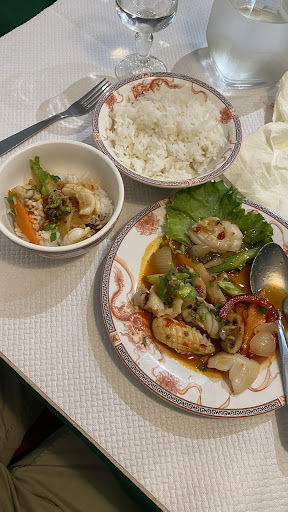 Je m'y suis rendu le 13 octobre. J'attendais à l'extérieur une amie et déjà j'ai vu plusieures personnes entrer et d'autres acheter à emporter. La devanture n'attire pas plus que ça mais quand on rentre on découvre une double porte avec des vitrines qui comportent un genre de micro jardin. Très agréable. Une fois la porte passé j'ai été accueilli par une délicate odeur de riz parfumée. Le serveur nous a reçu avec des yeux souriants car l'autre était caché par le masque (sage précaution). Il a demandé si nous étions que 2 et il a ouvert grand les bras afin que l'on choisisse notre table. La carte est arrivée dès installation, on nous a donné du temps pour choisir. Une fois fait petite attente tandis que tous les plats des autres clients m'ont attiré autant par leur odeur que par leur présentation. Mon assiette est arrivée très belle et odeur alléchante. Le riz était délicieux et parfumé. J'ai eu droit au conseil pour les accompagnements. Pas de sel en surplus, juste la bonne dose. La température du plat parfaite. Le grillé des gambas m'a enchanté et j'ai fini de manger la déco de salade car le goût des gambas en était imprégné. Quand il a récupéré mon assiette il ne restait que des carcasses bien mâchées. Et quantité raisonnable. Le saké m'a été offert et une carte des desserts posé sur la table. Je ne me suis pas laissée tenter car si c'est comme mon plat aussi beau que bon je n'arriverai plus a me lever de table. La tarification est juste et c'est un restaurant que je referai. (Désolée j'ai pris une photo mais je n'arrive pas à la joindre à mon commentaire. Dommage car c'était beau). Merci au serveur et à la musique douce qui peut se faire également oublier comme l'écouter en temps d'attente si l'on ne...