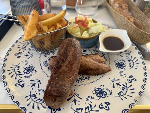 Read moreDécouverte de cette adresse suite a une recommandation, que je ne poursuivrais pas. La carte réduite a sa plus simple expression …pas trop de choix meme si on est sur du fait maison….. on se tracasse pas = Une entrecôte « uruguay » commandée a 31euros, on s’attend a Une entrecôte au format généreux. Quelle fut ma surprise en découvrant un petit morceau de viande genre steack, qui une fois debarassée du gras m’a laisse sur ma faim. Je suis tres carnassier et j’ai l’habitude de manger des morceaux d exception, mais la le gout etait quelconque et la portion ridicule. Je n’ai pas fait l’affront de demander a ce que l’on me la pèse pour en verifier le grammage mais… un serieux doute me taraudait. Note au chef…..laissez l’élitisme de cote et restez sur des assiettes généreuses. on a des tres bonnes races françaises permettant de faire des assiettes honnêtes et on est pas a 100 euros le Kg. Vous ferez des clients contents et qui reviendront. Apres ce morceau etait servis avec quelques frites maison éparpillées dans l assiette pour donner le change. Qd je demande si il y’a des sauces de prévues…on me repond oui ketchup mayo moutarde.. Brefs aucune sauce elaborée. Je ne m’attends pas a...