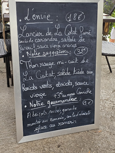 We had a lovely family lunch here today! Two of us had the âŹ28 menu â three courses: Tataki of tuna with a ..sauce, one of the best beef tartare I have ever had, and a quality mousse au chocolat. The âŹ41 menu was equally good value with Tataki tuna (larger portion) and a more elaborate "romesco blanco" sauce, rabbit stuffed with Swiss chard like a ballotine, gnocchi and chanterelles, mustard jus and pebre dâaĂŻ (a Provençal condiment, a kind of garlic and pepper sauce, similar to a rouille, sic Gemini), and a shortcrust tart with chocolate and passion fruit. All rounded off with a bottle of rosĂ© from the Luberon â 100% Syrah "Astrado PĂ©pie" at âŹ27. plesant atmosphere on the terrace, friendly and professional service. There is also an extensive Ă la carte menu and numerous fresh fish of the day. Will definitely return there. recommend parking on the lane leading up to the restaurant â once past it you will have to loop...