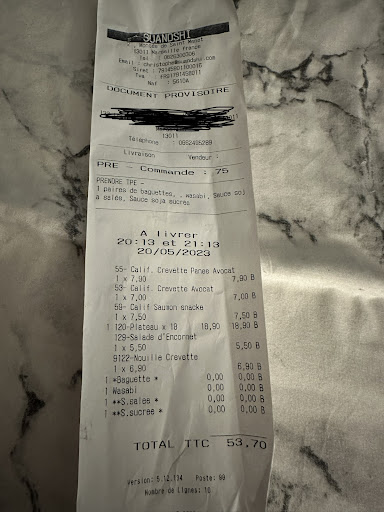 Read moreJe rĂ©alise aujourd'hui une commande de sushi Ă 11h22, le paiement s'effectue en ligne. On me dit que mon paiement est acceptĂ© et que ma commande est rĂ©alisĂ©e. AprĂšs 1h d'attente, je commence Ă m'inquiĂ©ter du retard. J'appel Su and Shi, le Monsieur m'explique que m'a commande n'a pas Ă©tĂ© prise en compte et que cela arrive souvent. Je lui demande par consĂ©quent le dĂ©lais de livraison, il me rĂ©pond 1h. Je lui dit qu'au vu du dĂ©sagrĂ©ment occasionnĂ© n'est-il pas possible de faire passer ma commande en prioritaire sachant que je n'ai qu'une heure de pause. Il me rĂ©pond sur un ton trĂšs agacĂ© que je ne suis pas la seule Ă avoir une heure de pause dĂ©jeuner et que ma commande ne sera pas en prioritaire. Je lui rĂ©pond : "Vous ĂȘtes en tort, et vous ne trouvez mĂȘme pas une solution?" il me rĂ©pond que c'est de ma faute si j'ai pas fait attention avant de voir que je n'avais pas reçu de mail. Un comble ! Je lui demande de me faire au moins un geste commercial, il refuse en m'indiquant qu'il n'a pas de preuve de mon paiement et met fin Ă la discussion indiquant qu'il Ă autre chose Ă faire. J'aurai apprĂ©cier au moins des excuses de sa part, chose qu'il n'a pas fait. Il serai nĂ©cessaire de rĂ©aliser des formations de savoir-vivre car il est inadmissible de s'adresser aux clients de...
