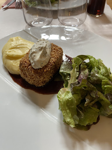 Le croustillant de bœuf Salers avec son aligot est un régal, j’ai adoré chaque bouchée et chaque saveur. On sent la cuisine faite avec des produits locaux et un grand soin, aussi bien en termes de goût que de présentation. Le dessert était aussi somptueux. Idem pour ma planche de charcuterie en entrée.