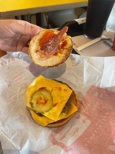 Read moreAmazing experience if you want to fight over your 1 tiny pickle slice and 1 cold bacon in a single burger. They were nice enough to ask if I wanted ice cubes in my drink, but I am still searching for at least one in there. Perhaps it melted on the way from the tray to the drink as it took forever to receive the food.