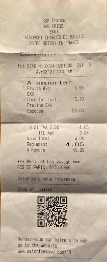 Read moreI was at Paul, an incivilian employee refused to accept a 50 euros (in a very rude way) note for a 4,80 purchase. My credit card was not working and the ATM only was releasing 50 euros notes. I went to Exki and I found a nice lady, very nice, I explained her the situation, no problems at all. She accepted the note for a small purchase. Good food, good attitude. Paul sucks, Exki will be my future and only place to go while in transit in CDG airport. I believe that Dounia is the name of the lady, God bless her, I was a bit hungry....