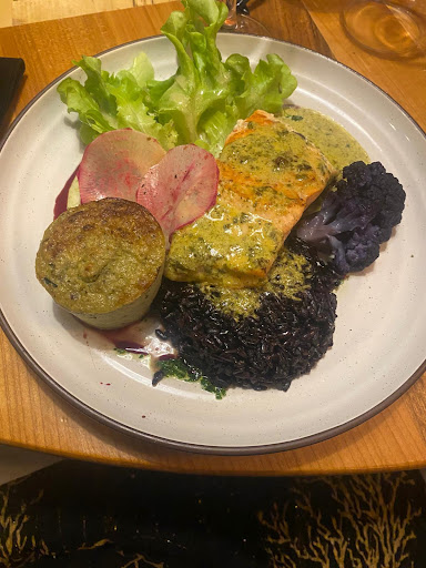 Read moreDes ingrédients de qualité très bien cuisinés et joliment présentés alliés à une touche légère d'exotisme (caviar de citron), ce fut un régal ! Il faut payer le menu un peu plus cher qu'ailleurs (et encore...) car tout est fait maison (foie gras, saumon fumé). Avec de si bons mets, on pourrait presque regretter l'absence de nappes et serviettes en tissu et d'une carte de vins plus étendue...mais cela aurait un coût aussi certainement. Le passage du chef auprès des tables est fort appréciable. Il a confirmé la provenance qualitative des aliments.