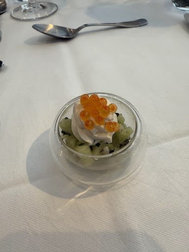 Read moreLe cadre est vraiment agréable, avec une ambiance soignée et un personnel très sympathique. Concernant le repas, les entrées sont assez légères en quantité, surtout au regard des prix, qui restent globalement assez élevés pour la qualité et le travail des produits. Les plats étaient très bons, avec de belles saveurs et une cuisson parfaite, notamment sur la viande. Quelques détails viennent cependant ternir l’expérience : une purée de petits pois servie froide ou mal réchauffée, un manque de sauce pour accompagner certaines assiettes comme le veau, et des plats qui auraient gagné à être servis plus chauds. Le pain est aussi un point décevant : correct mais industriel, alors qu’un pain maison ou de meilleure qualité aurait mieux mis en valeur les plats et permis de saucer correctement. Côté vins, la sélection est intéressante, avec de bonnes bouteilles, mais les tarifs restent eux aussi assez élevés, même si cela choque un peu moins que pour les plats. Enfin, le dessert, bien équilibré et pas trop sucré, manquait de relief : plus de croustillant ou de texture aurait apporté une vraie...