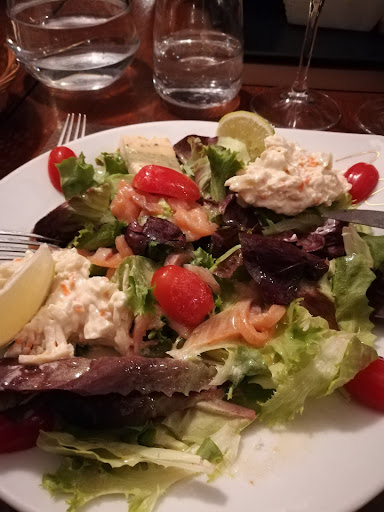 Après un accueil sympathique, j'ai été déçue par la qualité d'un menu alléchant dont les plats n'étaient pas à la hauteur. L'entrée, une salade était correcte. Le plat principal (des gambas) n'était pas chaud. Les légumes en accompagnement étaient identiques pour tous les plats, dont une tomate entière posée dans l'assiette simplement cuite à l'eau (légume hors saison ainsi que les courgettes) et les gambas simplement cuites à la plancha très fades. Le dessert, une tarte tatin, que je me suis contentée de gouter car industrielle (confirmé par la serveuse) comme d'autres plats d'ailleurs. En résumé un menu à 29€ trop cher au regard de la qualité des plats. Une cuisine faite maison correspondrait...