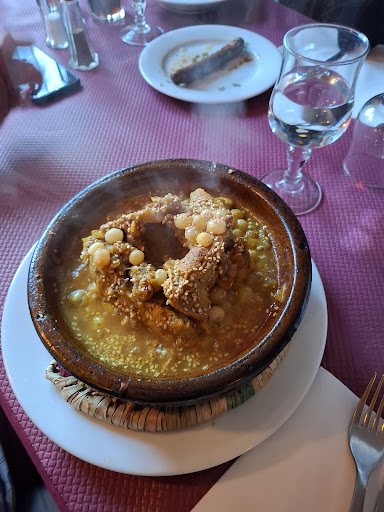 A fuir n’allez jamais la bas. Une honte 10 ans d’attente pour avoir son repas, on ne c’est pas du tout régalé la viande le couscous tout est fade le patron met 1H POUR VOUS SERVIR. Et il ne dit pas que le couscous en reprendre est un supplément il men en disant vou pouvez en reprendre et a la fin on est FACTURÉ POUR AVOIR REPRIS DE LA SEMOULE. Alors qu’on est même pas bcp servis toilettes sale qui pue la mort avec pleins de bêtes partout, miroir sal. Toile d’araignée au dessus de notre table grosse pas nettoyer. Pendant le repas plein de bêtes pleins de mouches sale qui squatte la table et sur le mur . Luminosité MÉDIOCRE. Ambiance pourrie , état des lieux sale . 1h d’attente pour une brick même pas de salade. Le mec oublie toujours un truc sur votre table obliger de le rappeler et monsieur montre son mécontentement. Énervé . Aucun professionnalisme prix élevé. Je ne recommande pas du tout du tout d’aller chez un USURPATEUR qui se proclame « restaurant marocain » plus jamais à fuir et ce n’est pas un resto !!!!! Horrible ya rien qui va . Par’ing très mal desservi très petit tu vois déjà la façade du truc tu vois l’heure …la viande sèche pas de goût fade et PAS FRAÎCHE. Ma tante a même eu des nausées mal de ventre..sur la carte il n’y a pas se qu’il ya d’indiquer de la salade il n’a même pas. Une honte n’allez jamais la bas ce ne sont pas des marocain ni la qualité d’un plat marocain. Nous sommes restés sur notre faim nous n’avons même pas pris de dessert tellement c’était long sal...