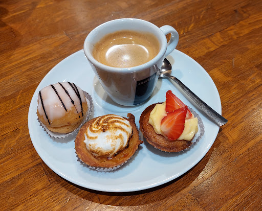 We were visiting from the UK, staying in nearby St Simeon, and looking for somewhere nearby for coffee and a cake. This wasn't the place we were heading for, but we're very glad we called in. We were the only English customers, which is often a good sign when abroad, and the selection of bread and cakes was fantastic. On our first visit, we had a coffee each and shared a small but lovely cake, then returned a couple of days later for coffee, a sweet crêpe, a "petit gourmand" (an espresso with three tiny, delicious desserts), a chocolate éclair and some takeaway (bread and fruit tarts) 😀