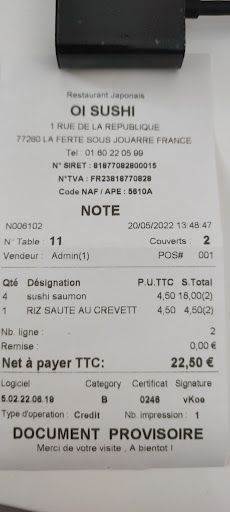 Read more1 etoile car le zero n existe pas pourtant cela mériterait de crée cette option. Une expérience catastrophique chez Oi Sushi La Ferté. Nous étions 4 personnes et nous avions choisi ce restaurant à volonté… mais nous en sommes ressortis affamés et écœurés.