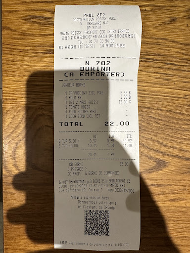 Read moreGOOD SERVICE ! My wife and I had just arrived here after our long 10 hour flight from Seattle, WA. We thankfully had a very short layover before our next flight to Naples, Italy in 30 minutes. OH NO ! In fact we were both feeling pretty beat up after getting up at 4am to catch a 3 hour flight to Seattle, CA at 9.30am at John Wayne Airport in Santa Ana, CA then a 6 hour layover at Seattle Airport before our 10 hour flight to Paris....and no sleep. I had time to grab some light food to nibble on during our 2 hour plus flight to Naples, Italy. This cafe seemed to be popular....it was pretty much the only choice near our departure gate in this terminal so I bought a Chocolate Almond Croissant and a Chocolate Chip / Macadamia Nut Cookie. I noticed their fresh made baguette sandwiches looks very appetizing....I mentioned this to my wife. And our munchies tasted pretty decent after we were in the air. We made a vow to buy baguette sandwiches and other munchies ( instead of eating terrible airline food ) at a Paul cafe when we head home from Paris in 3 weeks time. WE CAN'T WAIT FOR OUR 3 WEEK...