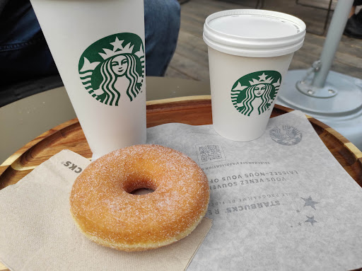 Read moreCette après midi mes amies et moi même nous sommes venus pour prendre boissons et nourriture au Starbuck nous voulions également prendre des termost pour cela la boisson était offert. Au moment du payement le serveur Isaac très agréable et accueillant mais sûrement encore en apprentissage à eu un peu de mal à gérer la clientèle et le règlement (car il fallait faire une réduction dû à l’achat des termost), sa collègue une dame de couleur cheveux noir court portant des lunettes est donc venu en renfort et d’un air très agacé la « aidé », elle nous demande donc comment nous souhaitons régler, étant donné que nous étions 3 et que le montant était assez conséquent nous souhaitons diviser le montant totale par 3, ce qui n’a pas convenu à madame et nous a d’un air très désagréable répondu que nous ne l’avions pas précisé lors de la commande (ce qui ne me semble par être le travail du client) elle a donc du tout recommencer en levant les yeux et nous regardant pas franchement avec sympathie et beaucoup d’agacement. Nous avons donc mes amies et moi même pris la décision de partir sans consommer quoi que ce sois. Je pense que cette dame devrait réellement se remettre en question ou changer de métier car elle n’est absolument pas accueillante chaleureuse et encore moins...