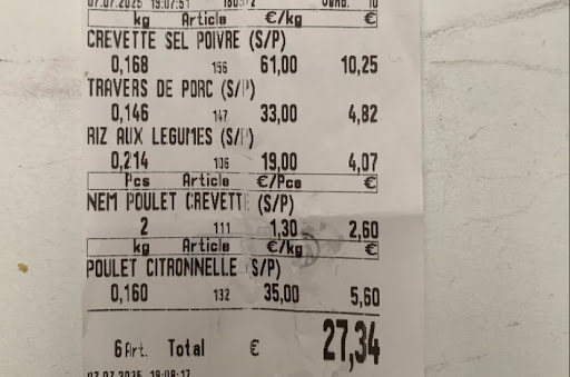 Read moreJe fais la queue et un monsieur se permet de me passer devant je suis avec les enfants une poussette !! il est immédiatement servis par un vendeur je dis que j’étais là avant mais le vendeur souris et continue de servir le monsieur qui as ces écouteur et est sur son téléphone .. la dame qui étais servie par une vendeuse devant moi le fais remonter également que j’étais là avant le monsieur mais les serveuses rigole une fois servis je re-explique mon cas on me rigole au nez en parlant je ne sais quelle langue un manque de respect total attendre 15 min tous sa pour 2 nems et 2 raviolis 5 euros qui était en plus huileuse aucune sauce proposer À FUIR !! Même le traiteur à carrefour 6 nems 6,50 son meilleure plus jamais je remettrais les...