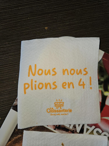 Read moreVenant régulièrement pour le midi a cette croissanterie depuis plus d'un mois, car a proximité de mon centre de formation je viens faire part de mon indignation en ce jour du mardi 23 mai 2023 pour le comportement néfaste désagréable et impoli du monsieur derrière la caisse(probablement le manager) Nous avons été bousculé verbalement moi et mes collègues par ce grossier individu. Nous lui demandions des informations relatives à la carte de fidélité digitale qui ne passe pas en caisse il nous rétorque qu'il ne sait pas pourquoi ça ne fonctionne pas d'un ton pressant en nous dirigeant vers les contacts en ligne du site web de la croissanterie il est hautain et malpoli en nous intimant de payer rapidement. Nous sommes restées polies jusqu'au bout mais lui n'en avait cure on l'a compris l'accueil n'est pas son fort par contre l'encaissement rapide oui. Quand il fait ce métier recevant du public il se doit de tenir un certain standing et une certaine image ce qui n'est pas son cas visiblement....peut être que des cours de self control et de management lui serait d'une grande aide à l'inverse de ces jeunes employés qui sont pour le coup serviable polis et avenant envers le client période de rush ou pas. Qu'il prenne exemple !
