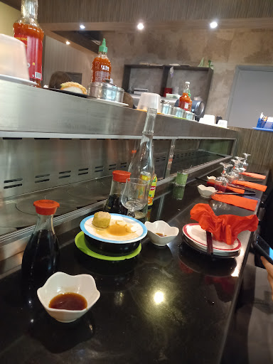 Read moreOriginal que de manger et boire depuis sa table sans bouger : au lieu de voir passer des valises comme à Orly ou Roissy sur un tapis roulant, ce sont des plats qui passent, libre à chacun de se servir au passage. 14,50 euros à volonté le samedi midi hors boissons. Sympa, juste dommage que certains aient le bras un peu trop long et piquent aux voisins par manque de courtoisie, ou prennent des dizaines de brochettes d'un coup alors que d'autres attendent en bout de chaîne. Au bout du compte tout le monde est servi mais faut être patient. Nourriture fraîchement cuisinée mais pas de qualité exceptionnelle,...
