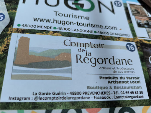 Read moreOutre la visite du magnifique village fortifié de la Garde Guérin, nous avons pu déjeuner à Le Comptoir de Régordane avec nos deux gros chiens. Nos amis à quatre pattes ont été très bien accueillis, que ce soit à l'intérieur ou à l'extérieur, en partageant l'une des tables de façon conviviales. Les produits sont locaux et frais que ce soit dans l'assiette ou à la boutique. J'ai pu goûter un nougat de chèvre au miel à tomber par terre !.... Le plat principal que ce soit les lasagnes au boeuf d'Aubrac ou ma truite étaient excellents. Je n'ai pas non plus resisté au croquant au miel et raisins secs. Le tout agrémenté d'un cidre local. Évidemment en terrasse le cadre est époustouflant !!!! L'accueil tout comme le service sont à la hauteur de cet écrin de saveurs.... Visiblement les pauses gourmandes ou pas sont aussi de rigueur. Incontestablement une...