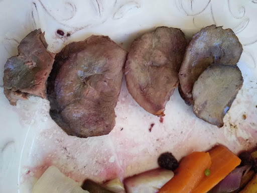 Plats : Daube de bĆuf. De nombreux morceaux de viande Ă©taient durs. Aucune recherche pour la prĂ©sentation : les morceaux de viande mijotĂ©e sont posĂ©es sur du riz blanc avec 2 morceaux de carottes