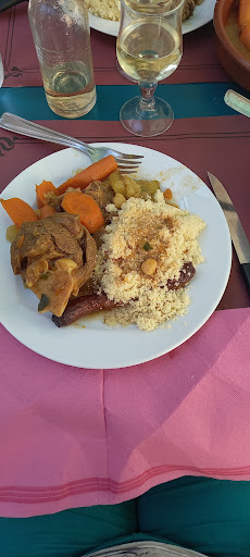 Read moreL'endroit est décoré d'une belle fresque couvrant trois murs représentant le paysage idéalisé d'une cité du désert au bord de la mer. Rien à voir donc avec la célèbre cité antique de Tipaza qu'on s'attendait à retrouver à l'ombre des pins au pied du massif du Chenoua. Cette déception très relative est vite passée car l'accueil sympathique et le service efficace étaient au rendez-vous. Enfin, la carte proposait les classiques de la cuisine algérienne avec des formules adaptées à toutes les faims et tous les moyens. Mon choix s'est porté sur un couscous brochette à la carte, qui a été copieusement servi et qui s'avéra fort goûteux, malgré l'absence de cumin avec les légumes. En résumé, je recommande sans hésiter cette cuisine saine qui vous fera oublier l'espace d'un instant l'incontournable...