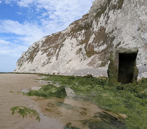 Around the beach there are some structures from world war two, along with a lot of nesting birds on the cliff-face. The beach is also very wide at low tide, so I cannot imagine it being...