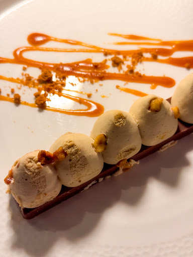 Read moreDeliciously grilled and perfectly cooked red porgy fish enhanced by olive oil with yuzu citrus and fenel seeds served with light vegetables and a mousse of various curbitaceae. Desert very refined with each flavor balanced: roasted cashew base topped with gianduia ganache and decorated with a line of dark chocolate sprinkled with coarsely ground pistachios. Staff was very friendly and helpful notwithstanding a full house. Definitely a go to address for culinary delights.