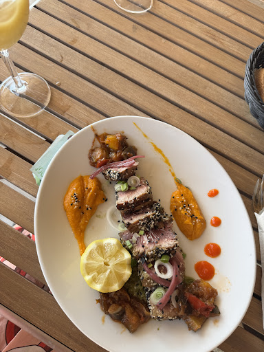Посетили данное заведение путешествуя по всей Корсике. В один из дней приехали на прекрасный пляж на котором располагается данное заведение, я купалась, загара пила вино из этого заведения, а муж сидел все это время у входа на ступеньках также выпивая алкогольные напитки. Через пару часов я проголодалась и предложила пообедать там же. В итоге мы с нашими недопитыми бокалами присели за столик ближайший к морю ожидая официанта. Однако не дождавшись меню я пошла рассматривать меню на стене, по возвращению возле столика стоял мужчина и говорил моему мужу что этот столик за который мы уселись занят, зарезервирован при этом на столе не стояла никакая табличка. Мой муж начал с ним спорить, но в итоге тот настоял чтобы мы пересели причем посадил нас за стол напротив входа в кухню откуда доносился шум, разговоры и все возможные запахи + поток людей выходящий на пляж с бокового входа. Через секунды уже за столиком с которого нас выгнали посадили парочку, которая не бронировала стол заранее. Как мы поняли позже мужчина был хозяином заведения или управляющий, он решил что мы не будем кушать и поэтому мы не достойны столика у моря😅 Это было крайне не приятно, такое неуважение к клиентам которые оставляют деньги в твоем заведении….В итоге я заказала еду, а мужа все бесило, что как так… можно обращаться с клиентами неуважительно. Настроение резко испортилось, муж говорил давай уйдем, мне не приятно находится в таком заведении и тем более продолжать делать чек этому человеку, но в виду того что я уже сделала заказ я отказывалась уйти. В итоге мы сильно разругались, из-за того что муж хотел проучить такого невежу руководителя уйдя, не кушая и не оплачивая заказные блюда, а я не хотела подвести официанта так он мне ничего не сделал и был милым. На концерт как мой муж забирает у меня мою сумочку с телефоном чтобы я не смогла оплатить счет и ушла с ним наблюдало пол пляжа, но после того как я разревелась он все таки ушел оставив мне мои вещи, а я сидела рыдая попивала коктейль и ждала свою еду. Потом муж вернулся со словами что у них нельзя платить картой и оставил мне наличку чтобы я не получила еще больше проблем от этого обеда😵💫 вот такая увлекательная история, так что ребята даже не знаю, я вот не вернусь в это заведение точно после данного опыта. Как то нужно наказывать таких людей и вправду, каким образом - может отменой посещения, другие заведения присутствуют на пляже в которых можно покушать) решать вам,...