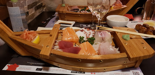 Un serveur qui nous a accueilli à bougé les tables pour qu'on puisse mettre les bébés à cÎté de nous. Nous commandons des cocktails et le repas. Un menu maison avec 2 soupe, 2 salade 2 riz, des brochettes et pleins de sashimi et sushis. C'était un pur délice, c'était trÚs frais et bien préparé. Nous n'avons pas beaucoup apprécié les brochettes mais c'est une histoire de goût. Malheureusement plus de place pour un dessert.
