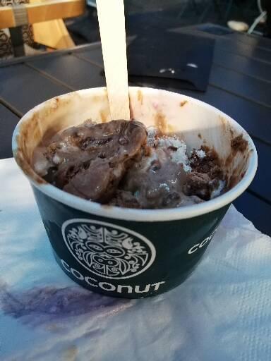 Read moreje descends les étoiles vous comprendrez pourquoi a la faim : Venu pour la première fois ce jour ( 10 février 2022), je découvre ce concept, accueil chaleureux il y avait du monde ducoup 15 mns d attente pour avoir une place ce n est pas grave on est partie faire les boutiques en entendant, 15 mns plus tard on revient top de la place, je pense que c est le patron qui nous accueille, je parlais a ma copine en disant que je cherchais du travail et le patron sûrement a dit nous allons ouvrir un coconut au waves si vous êtes intéressé venez déposer votre CV , j ai trouvé ça super aimable. On scanne le cuillère code pour commander sur l application j avais du mal avec mon réseau internet mais pas grave j ai quand même pu commander j ai pris une gaufre Kinder Buenos white avec copeaux de chocolat lait et blanc et une sauce de chocolat blanc et une glace au lait et blanc un régale et ensuite une boule de glace violette et un ICE tea le tout pour 12.90 euros je trouves ça très raisonnable. Très déçu de coconuts malheureusement j' étais une Cliente très fidèle mais je penses que je vais m arrêter la deux fois déçu j' ai commandé deux gaufres le 26 octobre Uber eat muse metz , les gaufres sont arrivées très compactes et pâteuse en bouche , la pâte pas aéré du tout c était vraiment très lourd . J y suis retournée le lundi 31 octobre avec une amie on a commandé une crêpe et une gaufre création malheureusement encore une fois très déçu la crêpe de mon amie pas du tout mais pas du tout cuite j ai la photo si besoin , une gaufre qui est arrivé encore une fois lourde est très pâteuse je l ai fais goûté a mon amie même elle elle était choqué de la gaufre et moi de sa crêpe nous venons très souvent c était enfin un endroit où de bonne gaufre était faite et des bonnes crêpes mais la c est descendu .. Vraiment dommage car Je sais que les erreurs peuvent arriver mais la c...