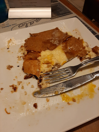 Read moreGrande amatrice de galettes et crêpes, j'ai eu l'occasion de tester des dizaines de crêperies dans ma vie... Et c'est la 1re fois que je ne parviens pas à finir mon plat tellement c'était immangeable et écoeurant ! La pâte des galettes est vraiment infecte, même à la maison on fait mieux : Un truc sans consistance, mollasson et qui semble avoir été imbibé d'eau, une espèce de mixture même pas cuite qui semble contenir autre chose que de la farine de blé noir... De plus en guise de galette oeuf-fromage-crème-oignons, j'ai eu l'impression qu'on s'était contenté de me mettre une énorme couche d'emmental fondu avec un jaune d'oeuf au milieu... J'ai cherché le reste des ingrédients mais je ne les ai pas sentis et à peine distingués dans l'assiette. Et comme si ce n'était pas déjà assez gras, il y avait une grosse noisette de beurre rajoutée par dessus la galette. Quand au service, c'est limite si on vous balance pas les couverts sur la table... J'ai passé mon repas à devoir attraper la carafe d'eau, le verre, les couverts, que le serveur déposait négligemment à l'autre bout de la table en passant... Trop fatigant ou chronophage pour lui de les déposer juste devant moi apparemment. J'étais vraiment pressée ce jour là et je n'avais pas eu le temps de manger depuis le matin ce qui explique que je me sois forcée à manger ce que j'ai pu et que je ne sois pas repartie aussitôt... Ce que je regrette. En résumé : La pire crêperie de ma vie sur les dizaines testées à ce jour ! L'étoile ce sera pour la rapidité du service, facile quand on fait réchauffer des galettes pré-préparées au...