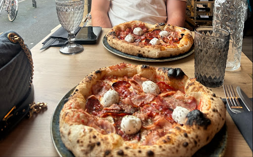Incuriosita dalle foto, ho deciso di fermarmi con una gran voglia di pizza nel cuore, e mi sono ritrovata davanti una meraviglia che ha superato ogni aspettativa. L’impasto? Perfettamente lievitato, soffice dentro e croccante fuori: uno stile chiaramente ispirato alla tradizione napoletana… ma con quel non so che in più che ha conquistato occhi e papille. Il menù è essenziale, curato, di una sola pagina: pochi ingredienti, giusti e selezionati con amore. Freschezza e qualità si sentono a ogni morso.