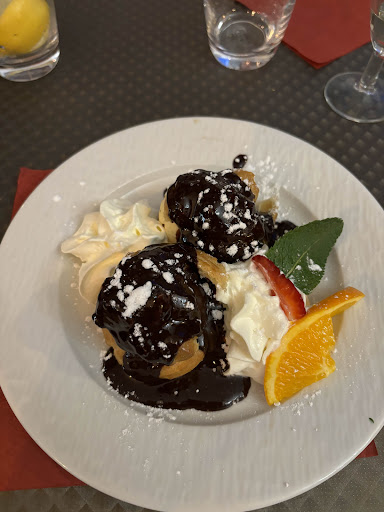 En dessert, j’ai opté pour les profiteroles, et ce fut un véritable moment de plaisir. Pâte à choux fraîche, chantilly légère, sauce chocolat généreuse : un dessert qui a du caractère, bien loin des versions industrielles que l’on voit trop souvent ailleurs. Le dressage, avec une touche de fruits frais, finit de séduire l’œil comme le palais.